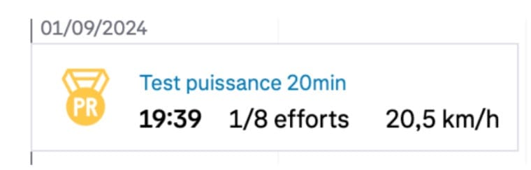 Avant de commencer ce cycle de 3 mois, j’ai fait un test de puissance sur 20 min en bosse.